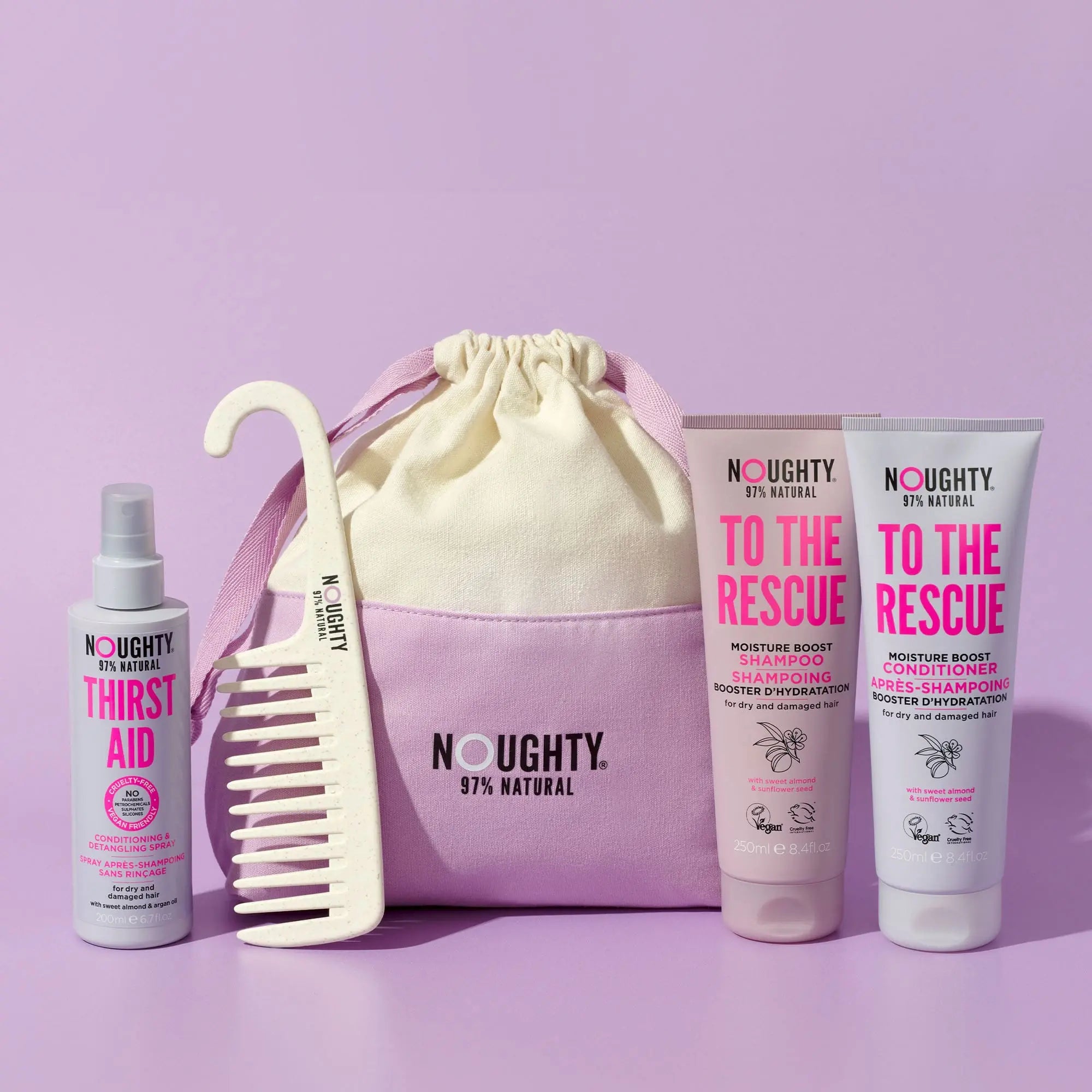 To The Rescue Moisture Boost Conditioner: Coloca una pequeña cantidad de acondicionador en las palmas y frótalas para esparcirlo uniformemente. Comienza la aplicación desde la mitad del cabello hasta las puntas y déjalo actuar en el cabello durante 1-2 minutos antes de enjuagar a fondo desde la raíz hasta las puntas.