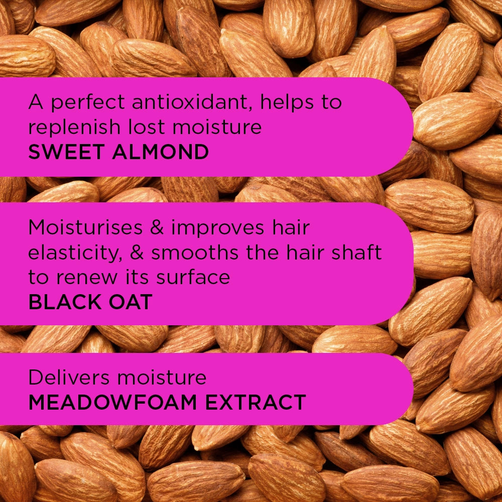 - Ingredientes Naturales: Enriquecido con una mezcla de aceites vegetales y extractos de almendra dulce y avena negra para proporcionar una humedad intensa.