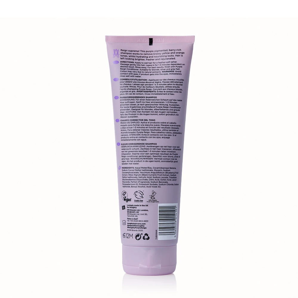 Versla gelige tinten met de tooncorrigerende Purple Reign Shampoo. Neutraliseer ongewenste tinten voor helderdere blondines, levendigere zilvers en frissere grijzen. Natuurlijk, sulfaatvrij, siliconenvrij, parabenenvrij. Veganistisch en dierproefvrij.
