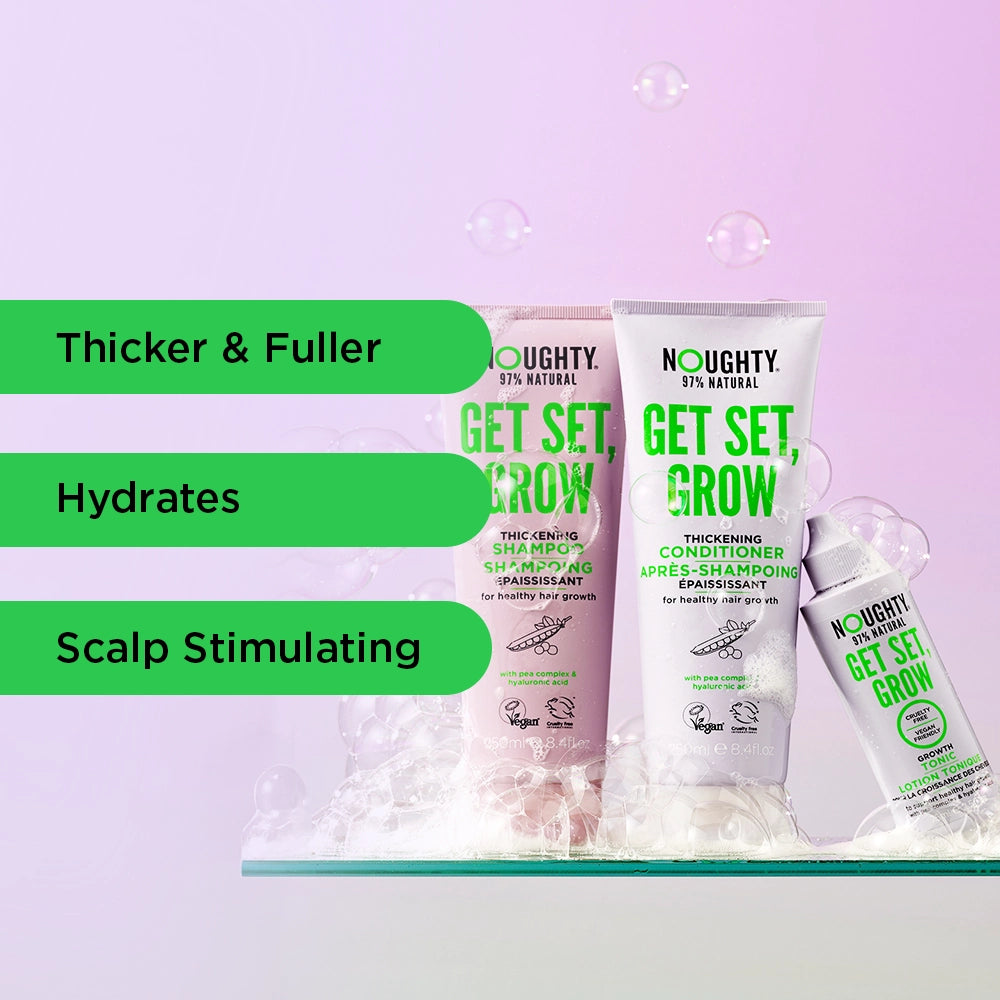 Get noticeably Thicker, Fuller hair in just 12 weeks!* Get Set, Grow Thickening Starter Bundle! Formulated with Noughty’s Pea Complex. Natural, sulphate-free, silicone-free, paraben-free. Vegan and cruelty-free.