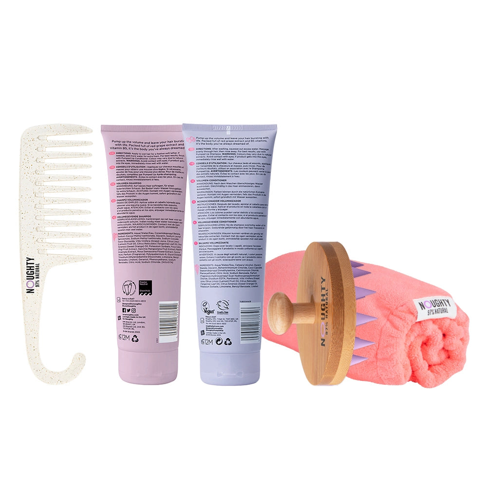 Our volumising bundles combines science with weightless care. The 97% natural formula is crafted to add volume to fine and limp hair without the hard work. The oil-free formula efficiently detangles locks, providing a lightweight feel. Enriched with red grape extract and B vitamins, it replenishes and hydrates, promoting better body and fullness for a scientifically advanced approach to volumised, nourished hair.